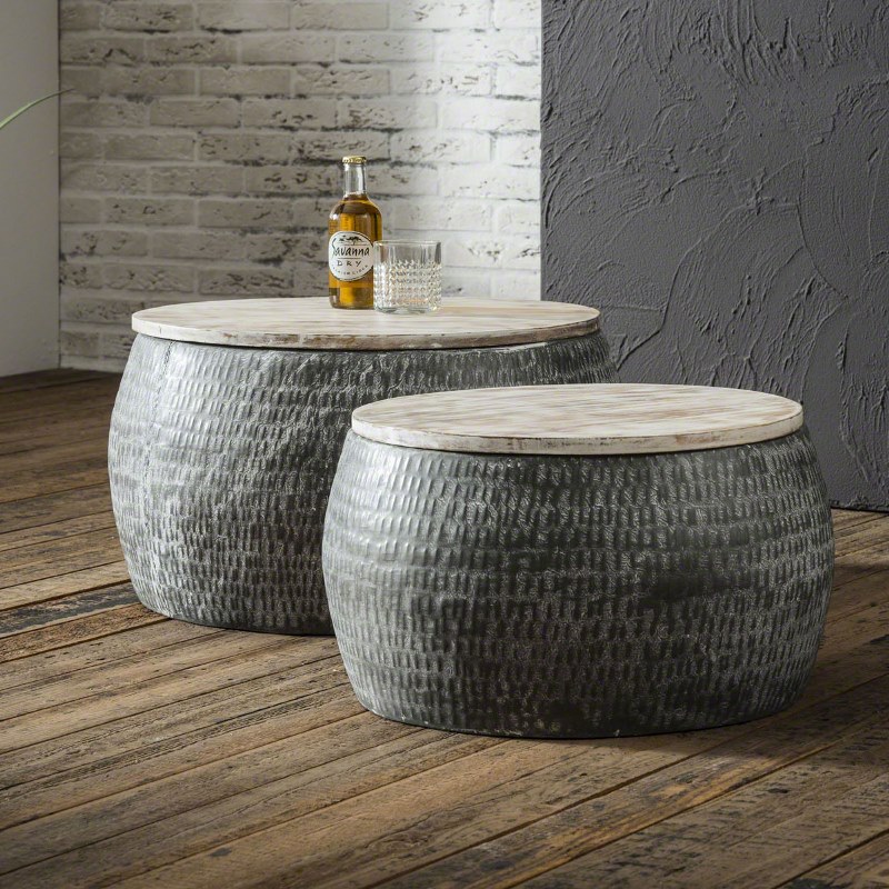 FURBO soffbordsset - metall och återvunnet mangoträ, runt
