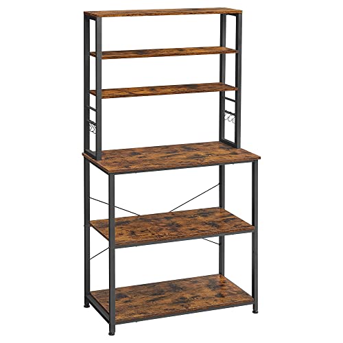 VASAGLE kökshylla, m. 6 S-krokar och 6 hyllplan – brun spånskiva och svart stål