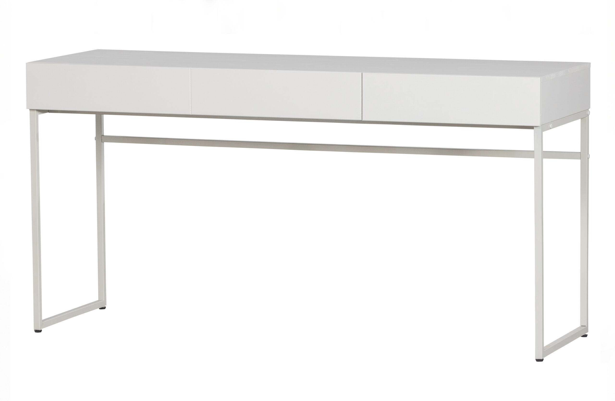 Slim Basic skrivbord med två lådor från Wtwonen i furu i en dimmig grå nyans. Benstommen är gjord av pulverlackerad metall.Basic-serien är slående för sin slimmade design och mattgrå dimfärg.…: